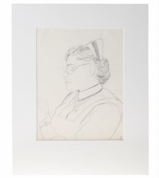 STLM 5702. Teckning. 23 st tecknade blyertsporträtt av sjukhusets personal. Gjorda av skötare Göte Bergström. Gåva till muséet av Göte Bergströms sterbhus. Nr 2,8,9,13,14,15,17,18,19,20,21 och 22 utgår 2009-03-26.