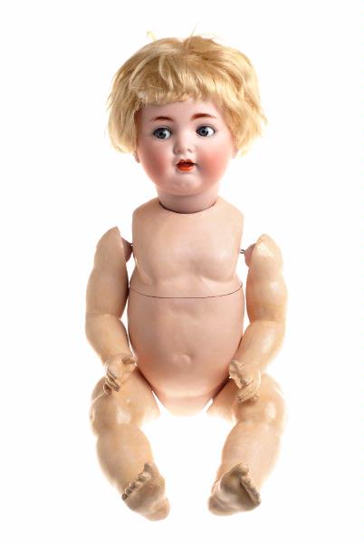 - Babydocka. Oglaserat porslinshuvud, vridbart, gult polkaklippt silkeshår. Blundögon som fungerar så att ett med fransar försett ögonlock välves över ögat när man lägger dockan. Även tungan är rörlig. Kropp av papier maché, armar och ben av trä klätt med papier maché. Armar och ben kan röras i axel och höftled. Inuti kroppen troligen en talmekanism som ej fungerar.