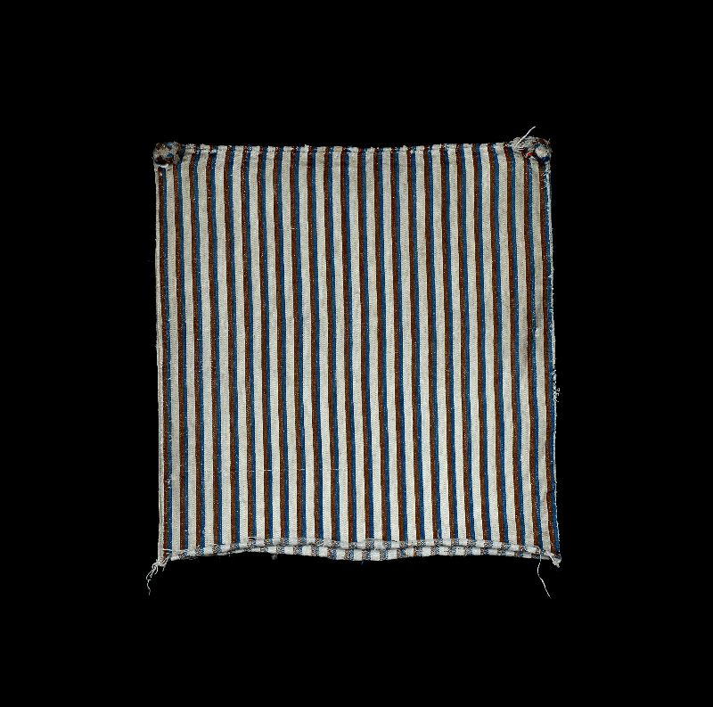 Fiskbensmönster. Randigt i naturfärg, brunt och blått.