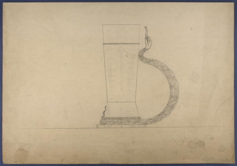 - Toddyglas-holk av silver (för insats av glas) med rakt vidgande sidor. Runt den uppåt avsmalnande fotdelen slingrar sig en orm som sedan reser sig utanför glaset och bildar ett handtag. Åttkantig fotplatta. Glaset utfördes för Medicinska föreningens räkning att användas av ordföranden på stora toddydagen. Det ställdes ut 1929 på Kulturen och på Stockholmsutställningen 1930.