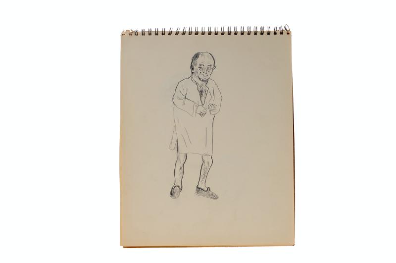 STLM 5698. Skissblock. Block med ett 20-tal tecknade porträtt av patienter. Gjorda av skötare Göte Bergström. Mått: 22x28 cm. Gåva till muséet av Göte Bergströms sterbhus.