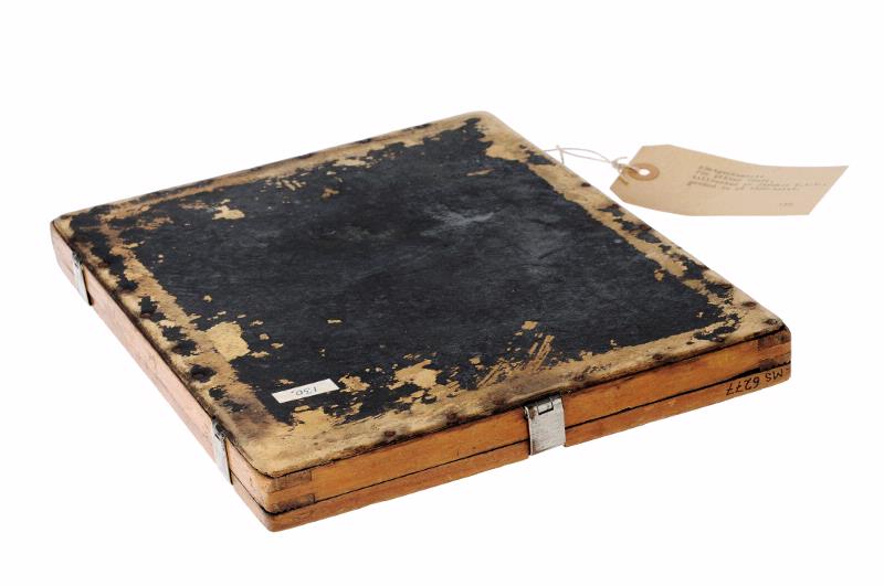 MS 6277. Röntgenkassett. För plåtar 18 x 24. Tillverkad av Järnhs U.A.B. Använd in på 1920-talet (enl medföljande handskrivna etikett i bläck). (Nr 130). Två träplattor, förenade med gångjärn. Den ena plattan har plåtskiva monterad på fjädrande underlag. Kassetten stängs med fyra metallhakar. L 275 mm. Br 215 mm. H 25 mm.