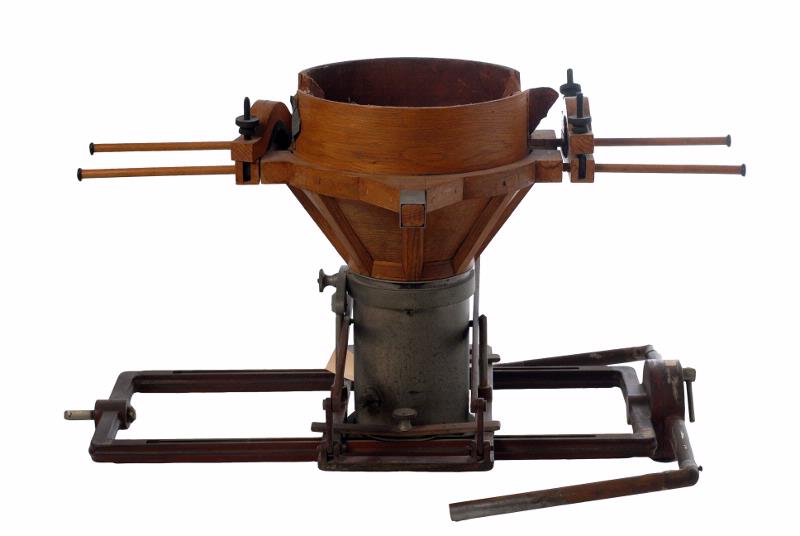 Bräda som spänts fast med vingmuttrar under brits, se MS 6446. På denna tvärgående bräda sitter ett stativ med rund hållare för röntgenrör.Har handtag. Märkt "John Anderssons Elektro-Tekniska Byrå", inh ing Bror Järnh.
