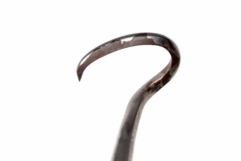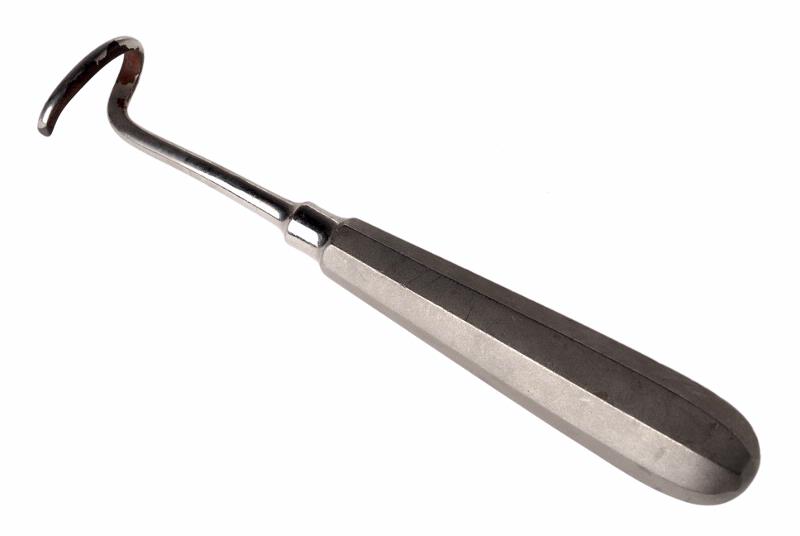 MS 3650. Raspatorium. L 180 mm. Böjt åt höger, stål, märkt med en asklepiosstav.