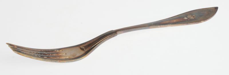 H 5132. Gaffel. 3 stycken. Stor. Av metall. Märkta: "C G H EXTRA/MA NS ALP" på baksidan och "RFS" på framsidan. L 215 mm Br 20 mm. Förvärvade från familjen Romares stiftelse.