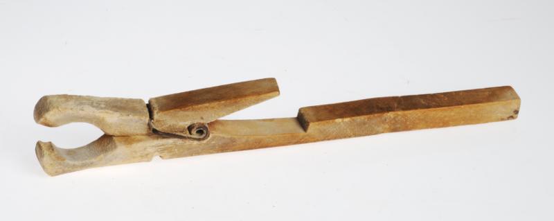 H 5946. Provrörshållare. Av trä. L 195 mm. Från Britta Nordmark, läkare i Malmö.