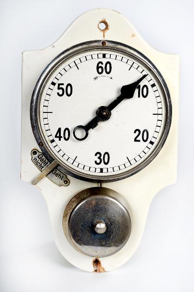 - Runt tidur med ringklocka monterat på vit träskiva. Använd bl.a. för avläsning av sänkningsreaktion. Dras upp och kan startas och stoppas med hjälp av en spak som förs mellan "Geht" och "Geht nicht". Graderad 0-60.