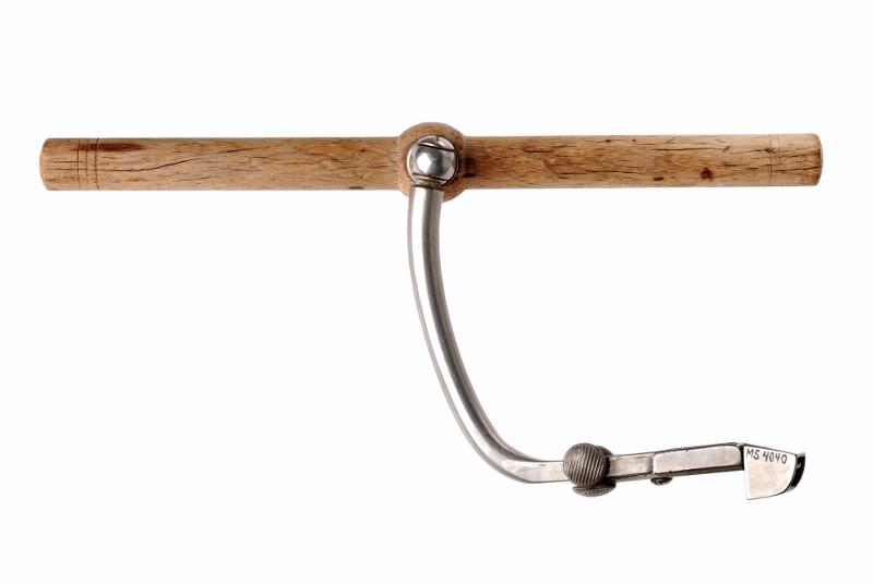 MS 4040. Förlossningstång, enl. Tarnier. L 410 mm. Stål med handtag av trä, märkt Collin & C A Paris.