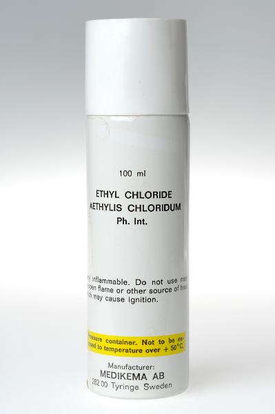 MS 8976. Tom behållare för Etylklorid. H. 145, Diam. 40 mm. Förvärvad 1986 från Maria Lindqvist.