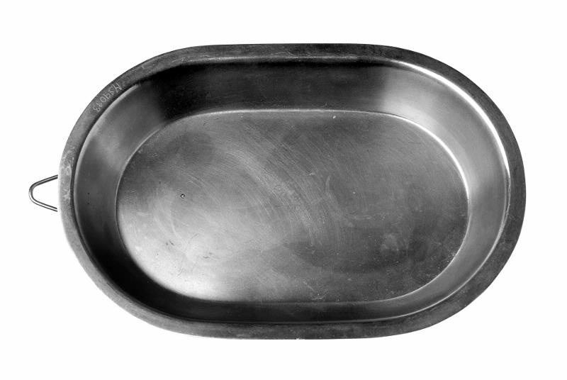 MS 9073. Fat. Rostfritt. Ovalt. H 180, B 180, L 210 mm. Försett med ögla för upphängning. Förvärvat 1986 från Maria Lindqvist.
