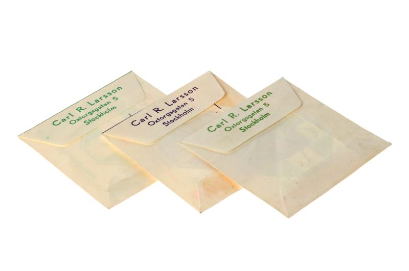 Text på kuvertens baksida: Carl R. Larsson, Oxtorgsgatan 5, Stockholm.