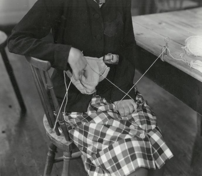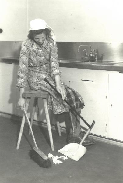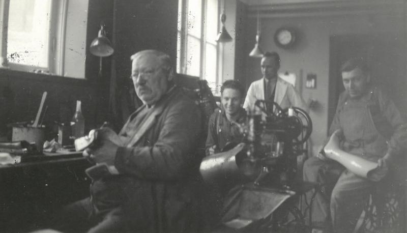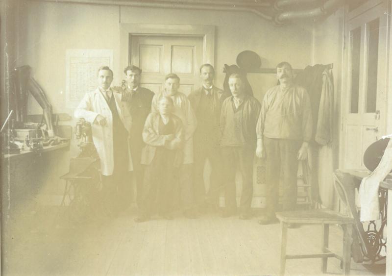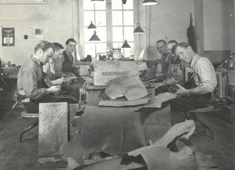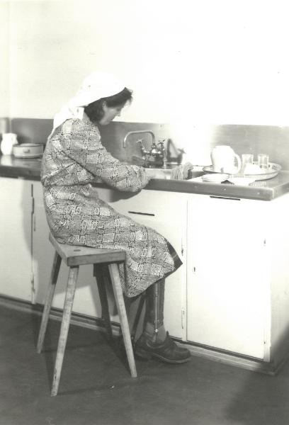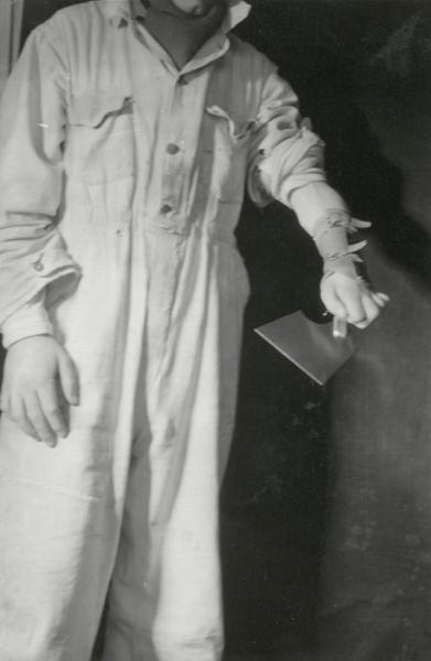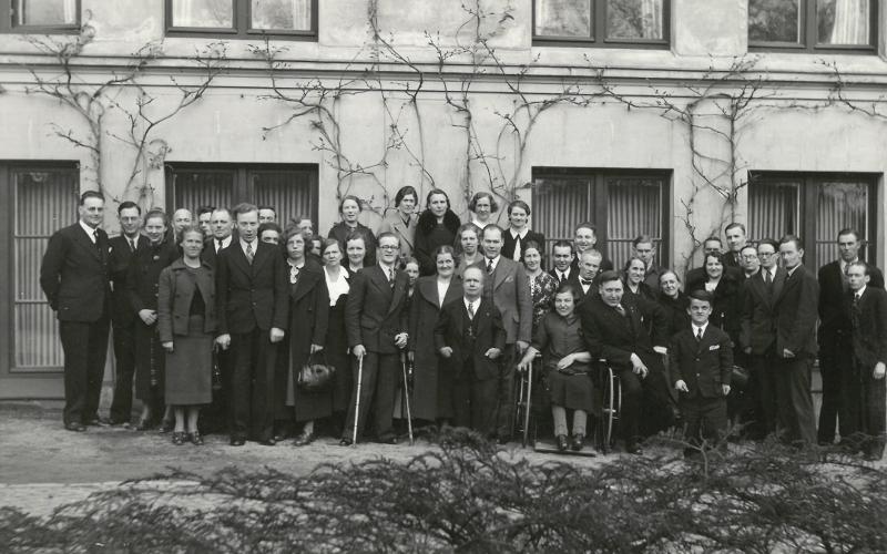 Pärm med blå rygg. Innehåller diverse foton från verksamheten vid Vanföreanstalten i Helsingborg. Bilder på personal, ortopediska hjälpmedel och verkstäder.