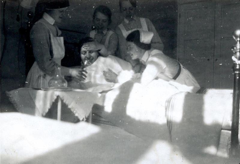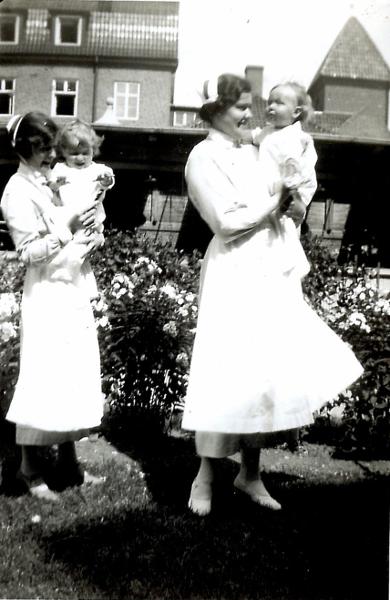 Liggande fotoalbum. Blå framsida med texten "snapshots". Innehåller bilder från sjuksköterskan Verna Kristianssons yrkesliv. Antagligen monterade av henne själv. Bilder från bland annat Lund och Helsingborg.