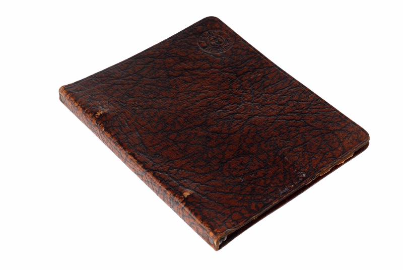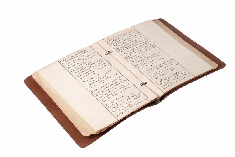 MS 9559. Ringpärm. Av läder. Lösblad med handskrivna recept.
