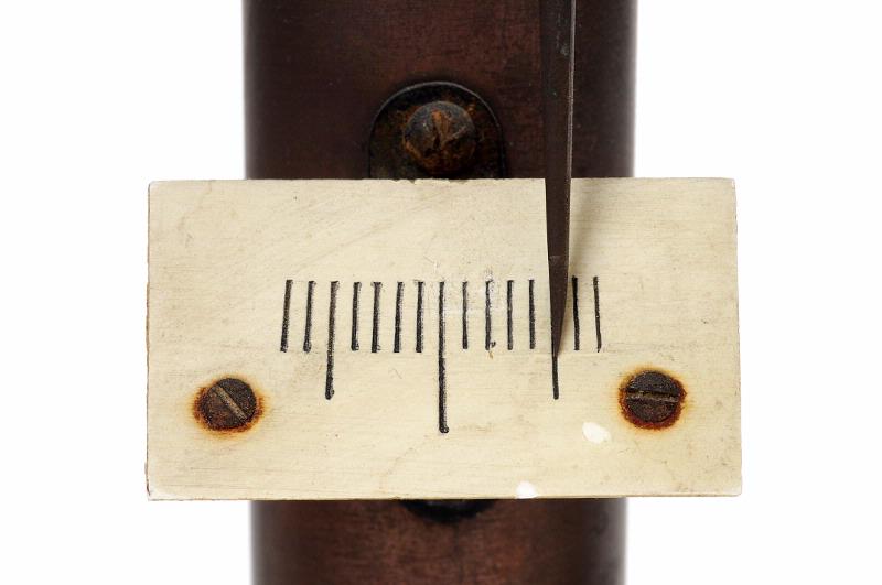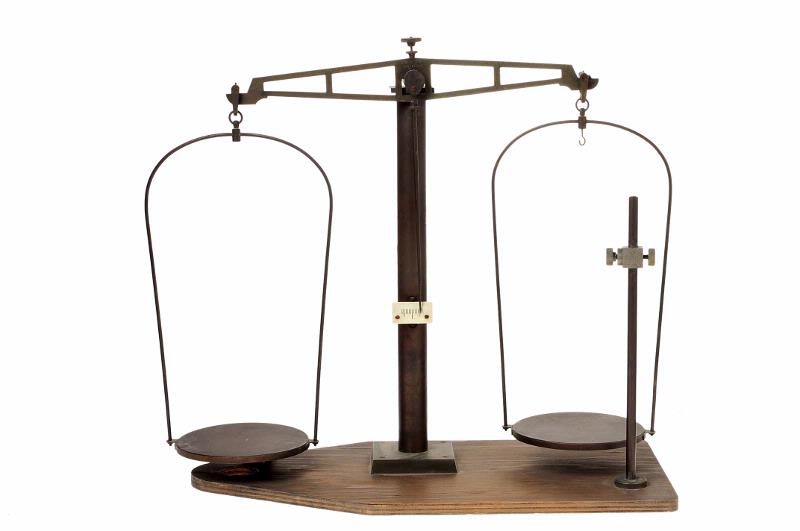 MS 1376. Våg. Precisionsvåg. H 405 mm, L 370 mm, Br 265 mm. Skåp av trä och glas. Våg av mässing och stål. Stativet reglerbart genom utvändig vev. Skalan avläses med hjälp av inbyggt förstoringsglas. Fabrik: Paul Bunge Hamburg Tyskland. R III:9