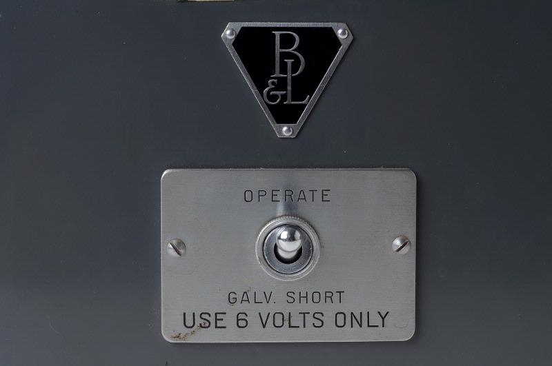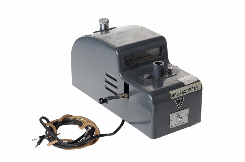 MS 1487. Galvanometer. L 375 mm Br 155 mm H 200 mm. Av metall, grålackerad plåt. Graderad skala 0-100. Typ 33-29-25 Serienr WP646. Fabrik: Bausch & Lomb Rochester NY USA. R XXVII:2.
