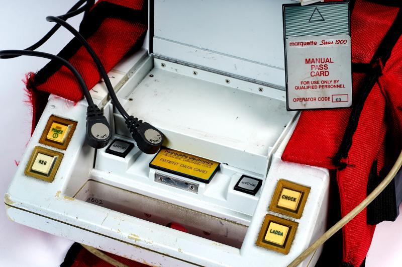 En av de första halvautomatiska modellerna. Troligen använd av ambulansperonal i Sjöbo.