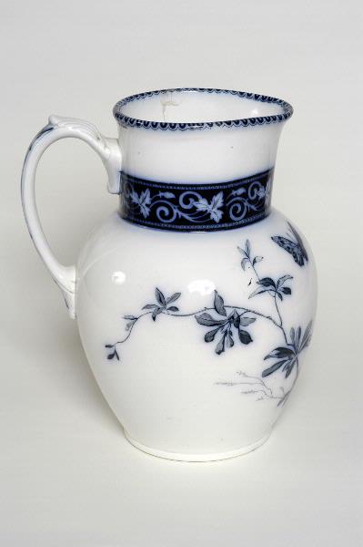 MS 5885. Vattenkanna. H 260 mm. Vitt porslin med blommönster i blått. Märkt Villeroy & Boch Dresden, Azalea.