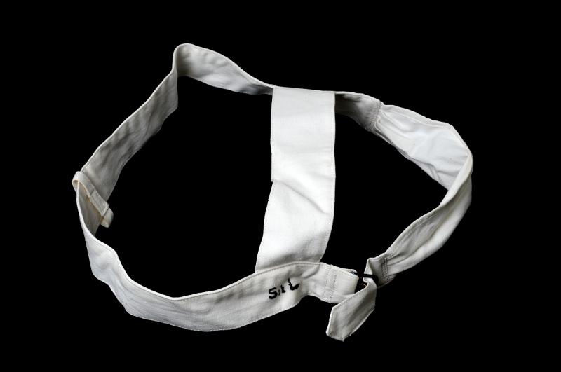 STLM 836. Förbandsartikel av vit bomull. Specialbeställd och sydd i sysalen på S:t Lars sjukhus.