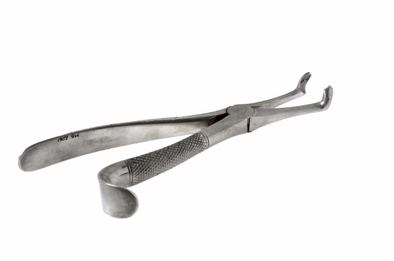 MS 2061. Tandtång. För visdomständer i underkäken. Av stål, ruträfflade skänklar. Märkt: "18". Höjd 185 mm.