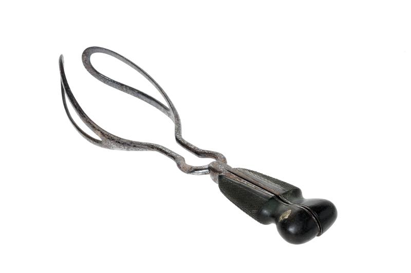MS 13582. Förlossningstång. Av metall och trä. L 37 cm Br 8,5 cm. Med svart räfflat trähandtag. Tillverkad sent 1800-tal av "Boileau & Boyd", Dublin, Irland. Enligt givaren har tången tillhört Oscar Wilde's styvbror Dr. Wilson. Förvärvat från Dr. Hubert O'Conner från Dublin via Carin Dedijer i Lund.