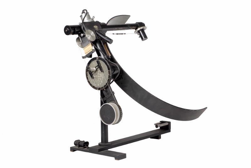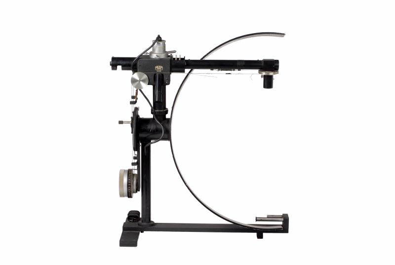 MS 10176. Perimeter. Enligt Maggiore. I svart frostlackerad metall, "Zeiss 44", H 710 Br 680 Dj 600. Rörliga överdelar inklusive halvcirkelbåge, bandjärn, på trefotat stativ. El-ansluten. Gåva 1987 av professor Torsten Krakau.