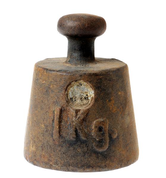MS 8250. Vikt, 1 kg, med kontrollstämpel. Tillhör MS 4246. Gåva från Lasarettsapoteket Hjorten.