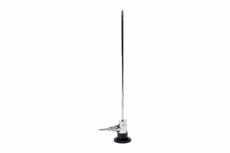 MS 11069. Nasofaryngoskop i rostfri metall och med huvud av svart bakelit. L 170. Märkt: "Storz, Germany". (märkt: "Rad.Pol."). Gåva från Onkologiska kliniken, mott. genom Karin Robertz.