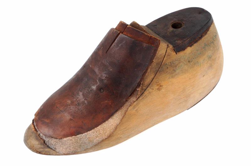 MS 12265. Läst. Vänster. Till herrsko. Av trä med läderdetaljer och klackjärn. Märkt med bläck: "Gösta Magnusson 27/11 1970". På ovansidan 3 lager inpassade läderstycken, det översta märkt bl a: "En kraftig (?) passning 20/6 74".