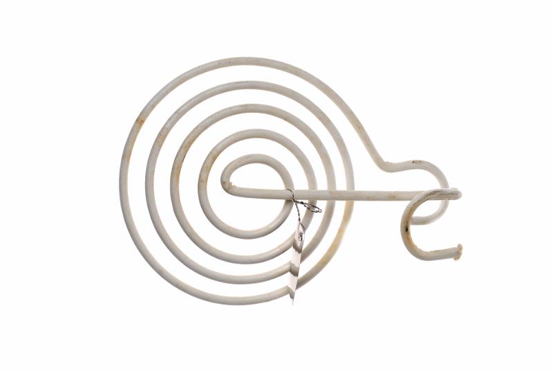MS 11349.Tvålhållare av spiralvriden, vitplastad metalltråd. H 30, L 140, B 100. Gåva av Yrkesdermatologiska avdelningen genom prof. Gun Agrup 1989-03-20.