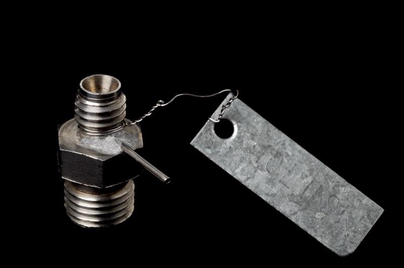 MS 11701. Koppling. Till stödplatta för shunt MS 11692. 3 st. Av rostfritt stål. Består av två olika stora gängade tappar utan plastmutter, på vardera sidan om en sexkantig metallmutter. Fästes på stödplattan. Med rör för påfyllning av bl. a. heparin. L 25 mm Br 10 mm. Förvärvat från Njurmedicinska kliniken, Lund genom Tore Lindholm 1990.
