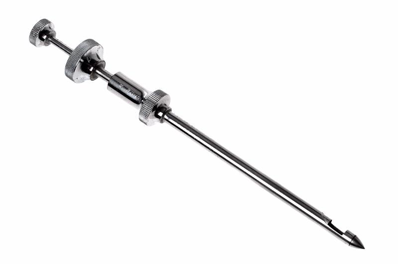 MS 10668. Muskelbiopsikanyl. 2 st. Enligt Bergström/Stille. Av rostfritt stål. L 158 mm. 2 kanyler som vardera består av 3 delar: 2 rör (L 130, 133 mm) och 1 ten (L 147), samtliga delar med runda kanträfflade grepp, märkt: "Stille". Stille kat. -82: 119/17. Gåva från Urologiska kliniken genom Eric Lindstedt 1988-07-05. 1 st. utgår 2009-03-10.