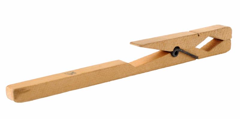 MS 12659. Provrörshållare. Av trä. L 170 mm. Klädnypemodell. Gåva av Klin Kem Lab genom Bertil Sandell 1993-03-02.
