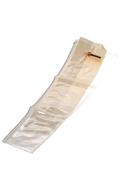 MS 13465. Stödskena. Av plast och metall. Uppblåsbar. För fixering av arm. Genomskinlig med dragkedja av metall. Tillverkad av "Parke, Davis & Co", Detroit, Michigan. Modell: "Readisplint". Funnen omärkt vid inventering 2009.