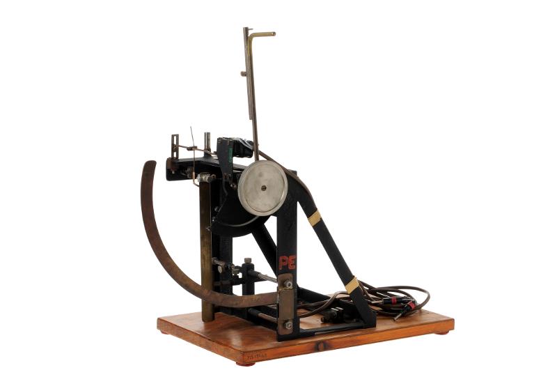 MS 13468. Torsionsvåg. Av metall och trä. L 41 cm Br 26 cm H 32 cm. Byggd i Uppsala av instrumentmakaren Folke Högberg ca 1952-1953. Avsedd för mätning av muskelfibrers kraft eller spänningsutveckling under påverkan av olika metalljoner på muskelcellerna. Dessa tester had initierats av undersökningar utförda av den ungerske biokemisten Albert Szent- Györgyi (1893-1986), nobelpristagare i medicin/fysiologi 1937. Det finns en kopia på en tidskriftsuppsats beskrivande en undersökning av denna apparat, se Uppgiftsbok 103. Funnen omärkt vid inventering 2009. Gåva av Farmakologiska Institutionen genom prof. emeritus K. A. Edman 2000-04-11.
