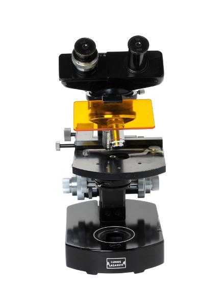 MS 13585. Mikroskop. Av metall och glas. L 16 cm Br 21 cm H 36 cm. 3 objektiv och lampa är fastsatt på mikroskopet. Elektrisk, klädd sladd. Objektplatta saknas. Tillverkat av "C Reichert", Wien, Österrike. Modell nr "204909". Signerat: "Patologiska institutionen" samt "Lunds Sjukv. dist. Pat.". Funnet omärkt vid inventering 2009.