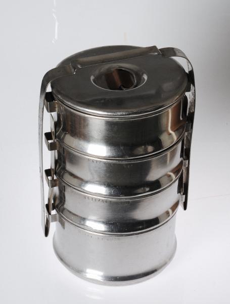 - Består av 4 runda kantiner delar som placeras ovanpå varandra och hålls samman av ett handtag som löper genom byglar på vardera kantinen. Överst ett lock. Märkt "Metektro Rostfritt Stål Mölntorp". De tre understa kantinerna märkta "Nattvakt 4B2", den översta "Nattvakt 4B3".
