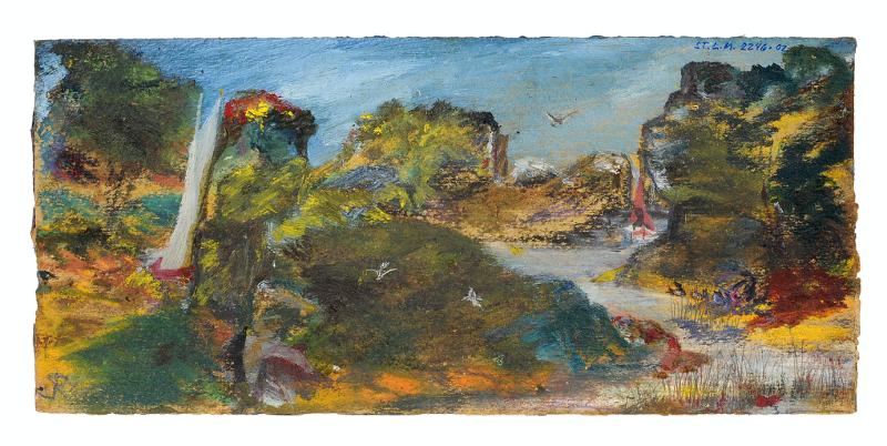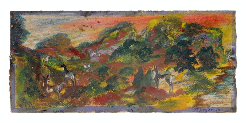 Sid 1: Målat i vaxkrita-olja. Motiv: "Hjortparken".