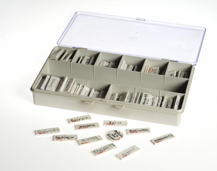 H 1899. Porslinsbrickor. Efter sterilisering placerades de exempelvis i vätska man hade under pågående operation.