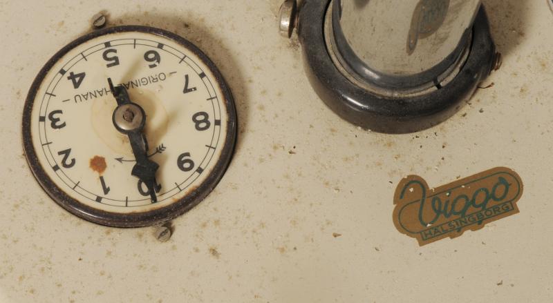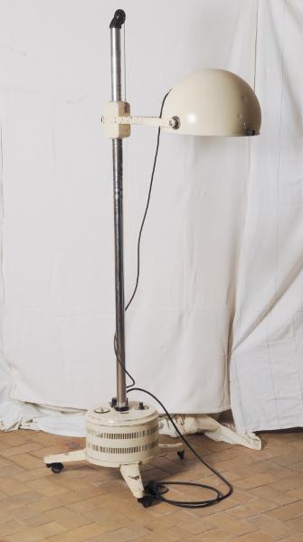 H 2902. Bågljuslampa, för värmebehandling, använd vid Helsingborgs Infektionsklinik, på 3 fötter med hjul, elektrisk anslutning.