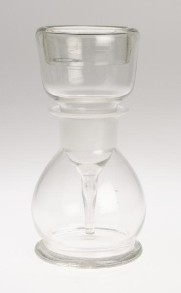 H 4436. Bröstpump. Av glas. Två delar. H 15 cm, Diam 7 cm.