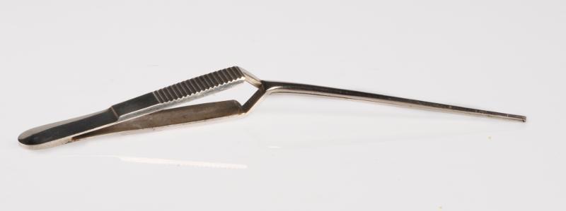 H 3966. Öronpincett. Med korsade skänklar. 1 x 2 fina klor. Märkt: "C Nissen". Rostfri. L 14 cm.