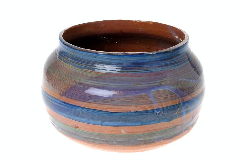 STLM 5344.2. Ytterkruka. Diam 21,5 cm H 14 cm. Drejad ytterkruka. Glaserad i regnbågsfärger. Patientarbetet. Märkt: LM