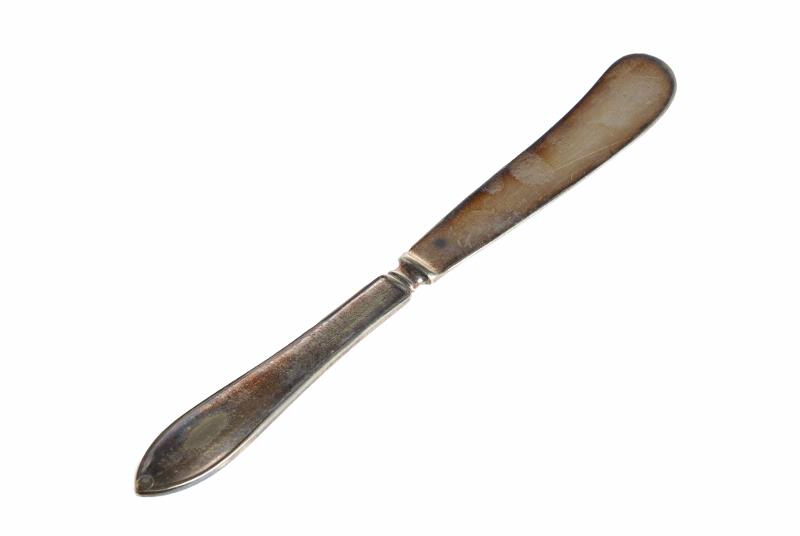 På knivbladet stämpel E.M.I.1. na N.S.ALP. 12(M?) andra bokstaven från vänster samt två tecken till höger om siffran 12 otydliga/oläsliga.