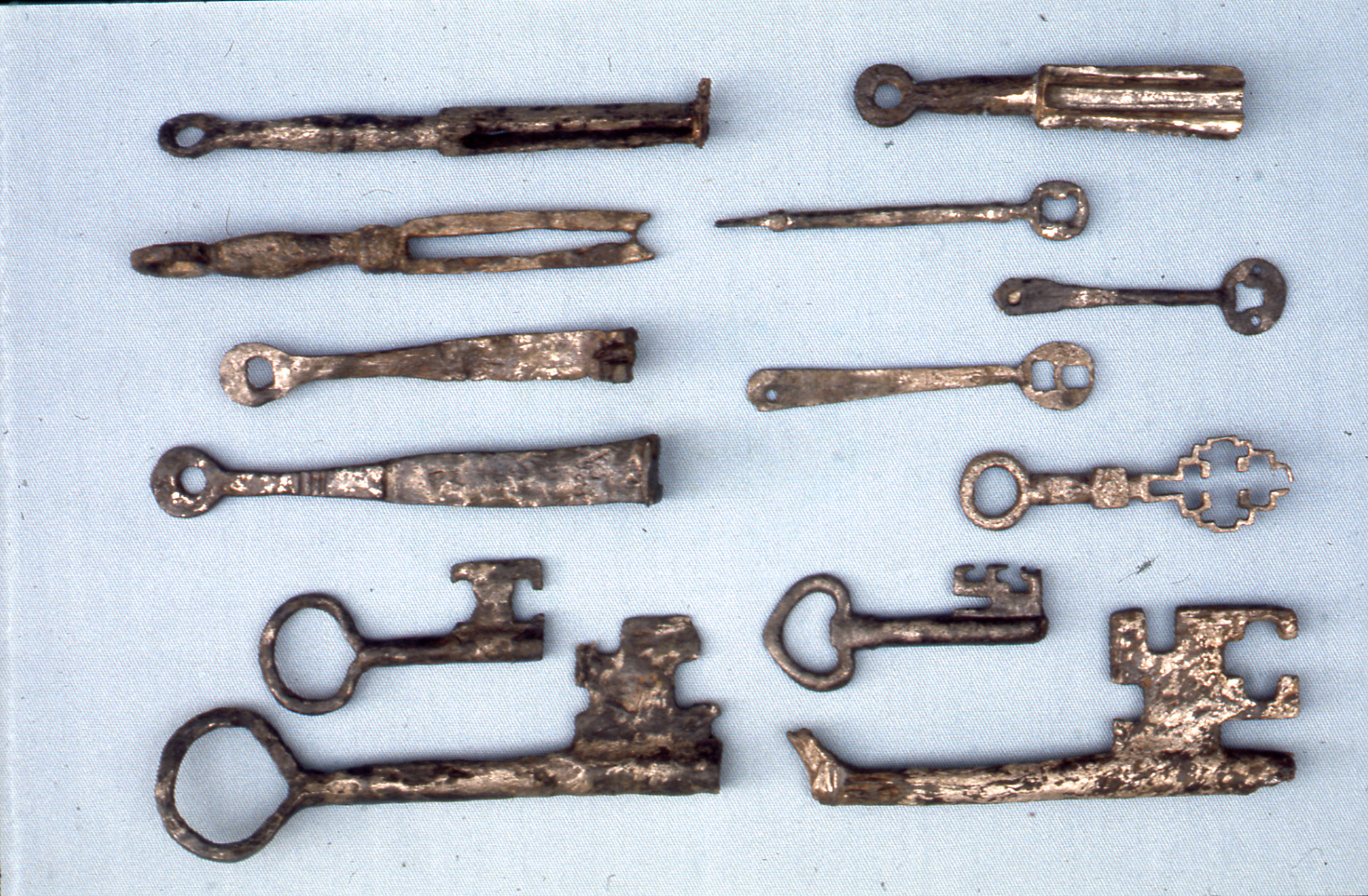 Lundaarkeologiska avdelningens fotonegativ. Kv. S:t Clemens 8. Nycklar.