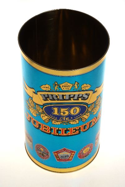 Burken är tillverkad för de anställda på Pripps Bryggerier, med anledning av företagets 150-års jubileum 1978. Rune Ohlin arbetade som tecknare och grafisk formgivare hos Åkerlund & Rausing ca 1955-1960 och på PLM från 1960 fram till sin pensionering 1999. Rune Ohlin har under åren samlat exempel från sin verksamhet på PLM i form av original, provtryck, förlagor, oanvända förpackningar mm. Han har även samlat exempel på kollegors formgivning. Rune Ohlin fick bland annat utbildning på ÅR:s atelje där han började på 1950-talet. På ÅR:s atelje fanns den första reklamtecknarutbildningen i Sverige på 1940-talet. Som mest hade ateljén 35 tecknare anställda. Det var på 1960-talet. När PLM var som störst fanns nio tecknare anställda på ateljén. De sista åtta åren har formgivningen skett i datorer. Denna typ av grafisk design på förpackningar har under 1900-talets slut alltmer tagits över av annonsbyråer som står för hela marknadsföringen av en produkt. Även PLM har nu lagt ner sin ateljé.