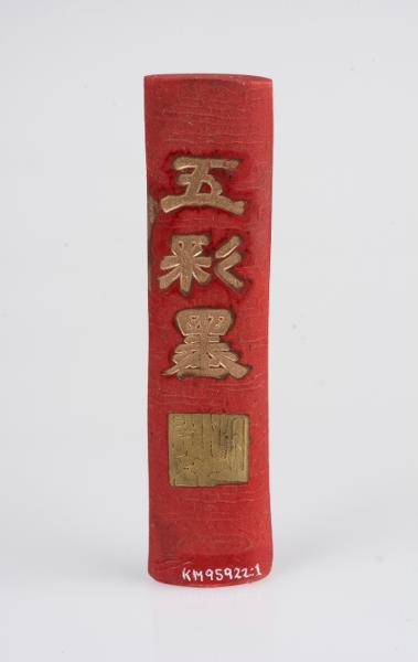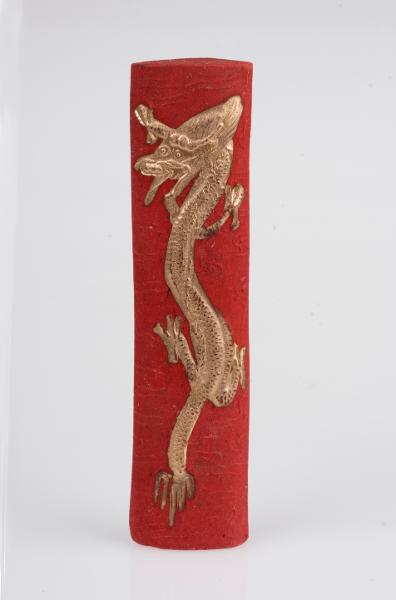 Tuschstift för färg. Med reliefdekor i guld i form av drake samt med skrivtecken och sigillstämpel.