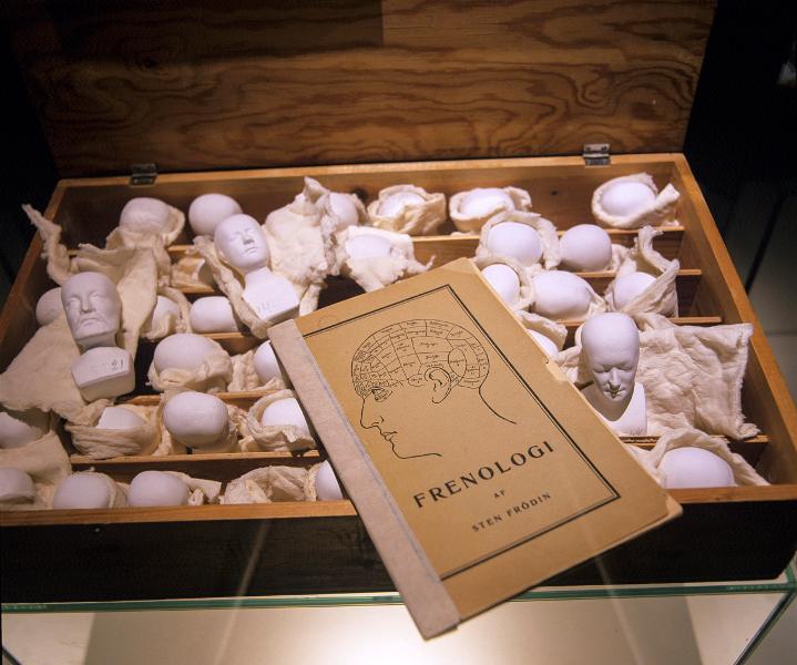Dok Underbara Fasansfulla människa. Monter om frenologi. Från utställningen "Underbara fasansfulla människa. Vem har rätt att leva?".