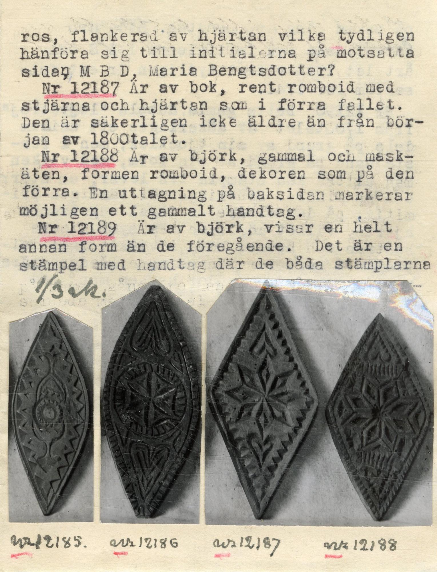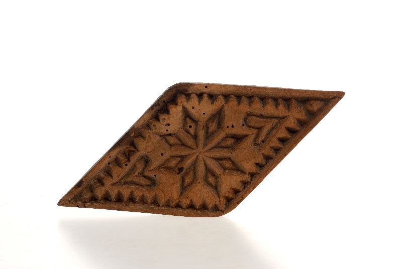 Romboid. I mitten en stjärna med ett hjärta på vardera sidan. Uddsnitt längs med ytterkanterna.