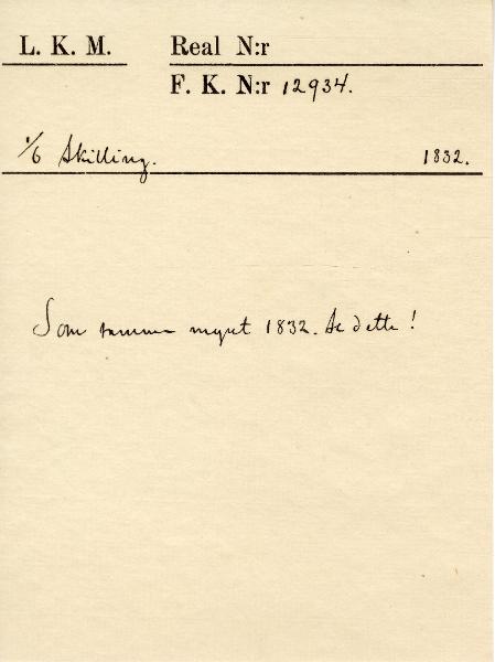 Enligt huvudliggaren skall 8 styck mynt finnas. I samband med Access 2006-2008 återfanns endast 1 styck.
